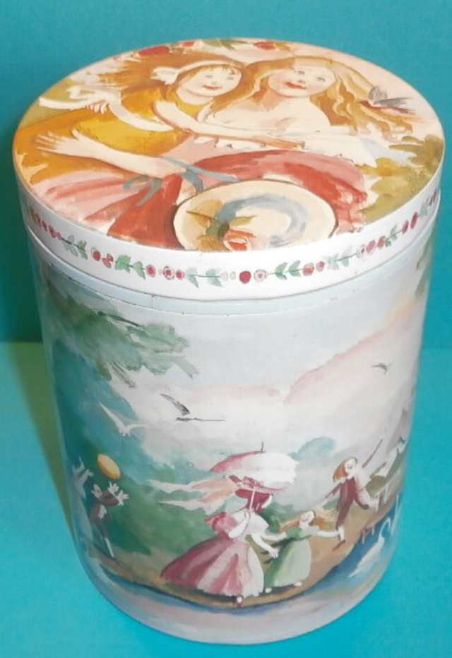 Irma dåse med Irmapigen Dåsen er ca. 10,50 cm høj og ca. 6,5 cm i diameter. Den har brugsspor, lidt rids i låg, lidt nus og overflade rids, lidt tæring i bund kant er ellers i pæn stand. Pris 95,- (Bestil Daa.0437) |