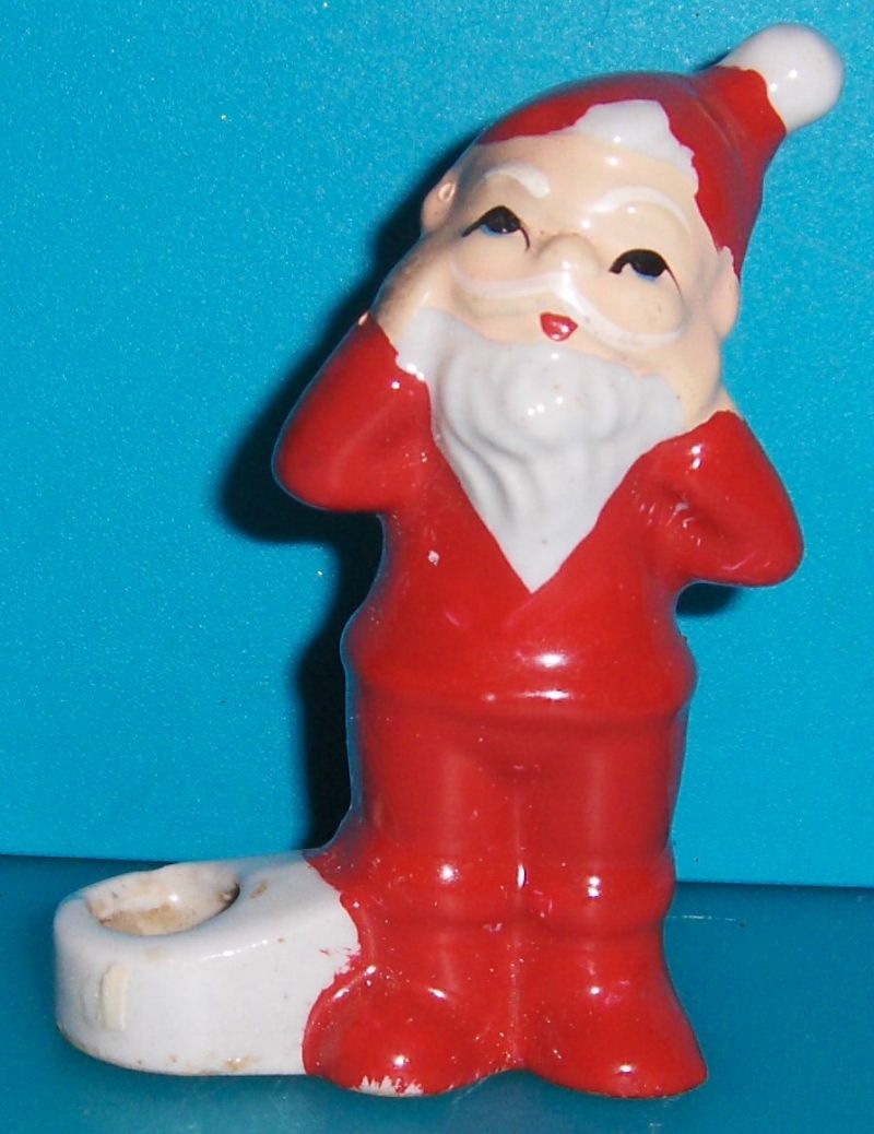 Gammel julenisse med juletræslys holder Han er ca. 7 cm høj. Har lidt brugsspor, han har lidt malings afskaldning, sterin rest, er ellers i pæn stand. Pris 75,- (Bestil J.ting 0439) |