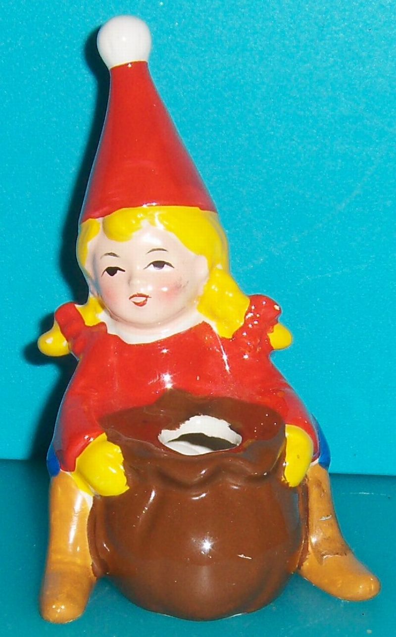Lysestage til julebordet - Julepige med sæk. Hun er ca. 10 x 6 cm. Til juletræslys, har lidt brugsspor er ellers i pæn stand. Pris 75,- (Bestil J.ting 0437) |